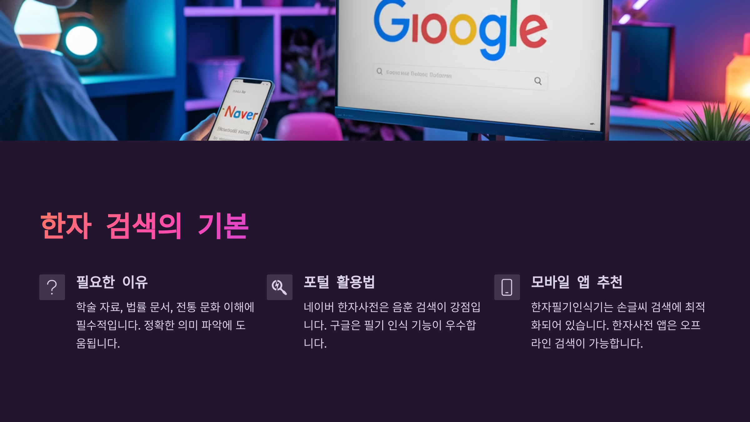 | ๊ฒ์ ๋๊ตฌ ํ์ฉ๋ฒ | ๋ค์ด๋ฒ, ๊ตฌ๊ธ, ๋ชจ๋ฐ์ผ ์ฑ ๋ฑ ๋ค์ํ ํ๋ซํผ์์ ๋น ๋ฅด๊ณ ์ ํํ ๊ฒ์ ๊ฐ๋ฅ |