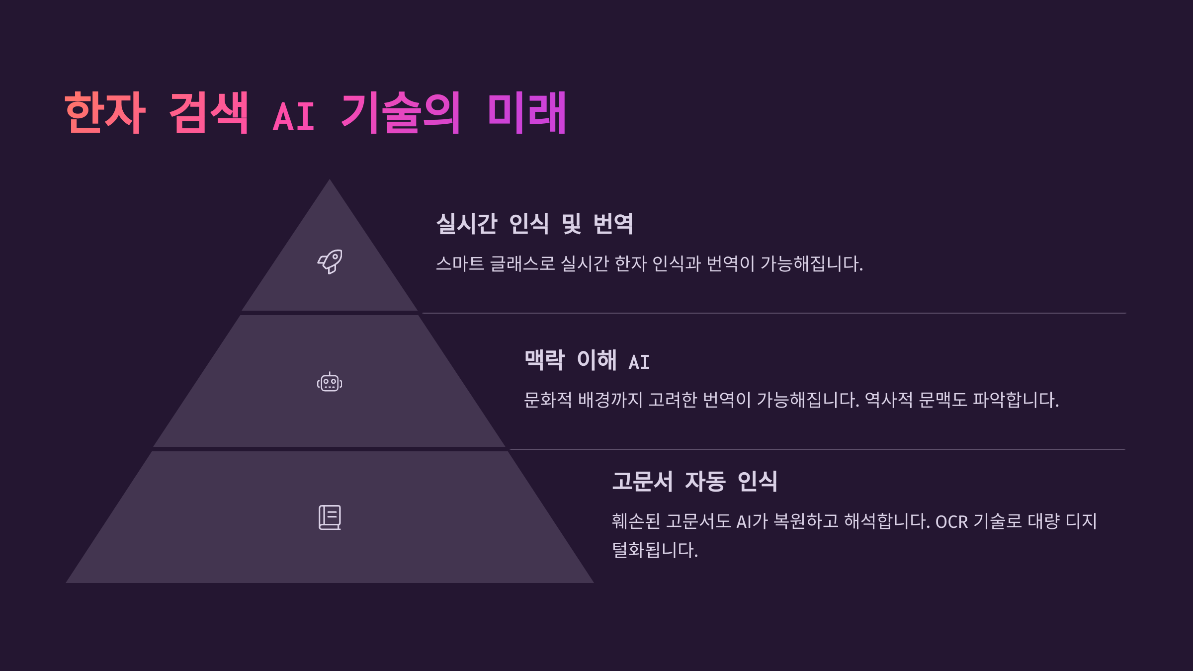 | OCR ๊ธฐ์ | ์ด๋ฏธ์ง ์ ํ์๋ฅผ ๋ฌธ์๋ก ๋ณํํ์ฌ ๊ฒ์ ๋ฐ ๋ฒ์ญ ๊ฐ๋ฅ |