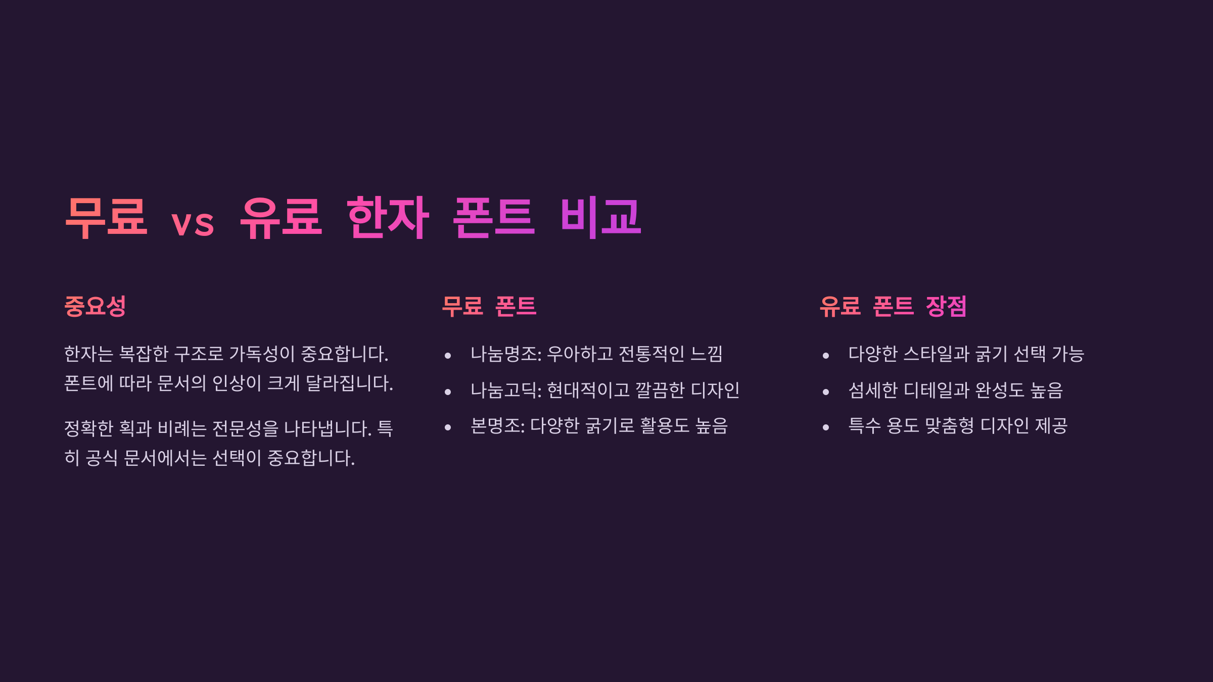 ๋ฌด๋ฃ vs ์ ๋ฃ ํ์ ํฐํธ ๋น๊ต