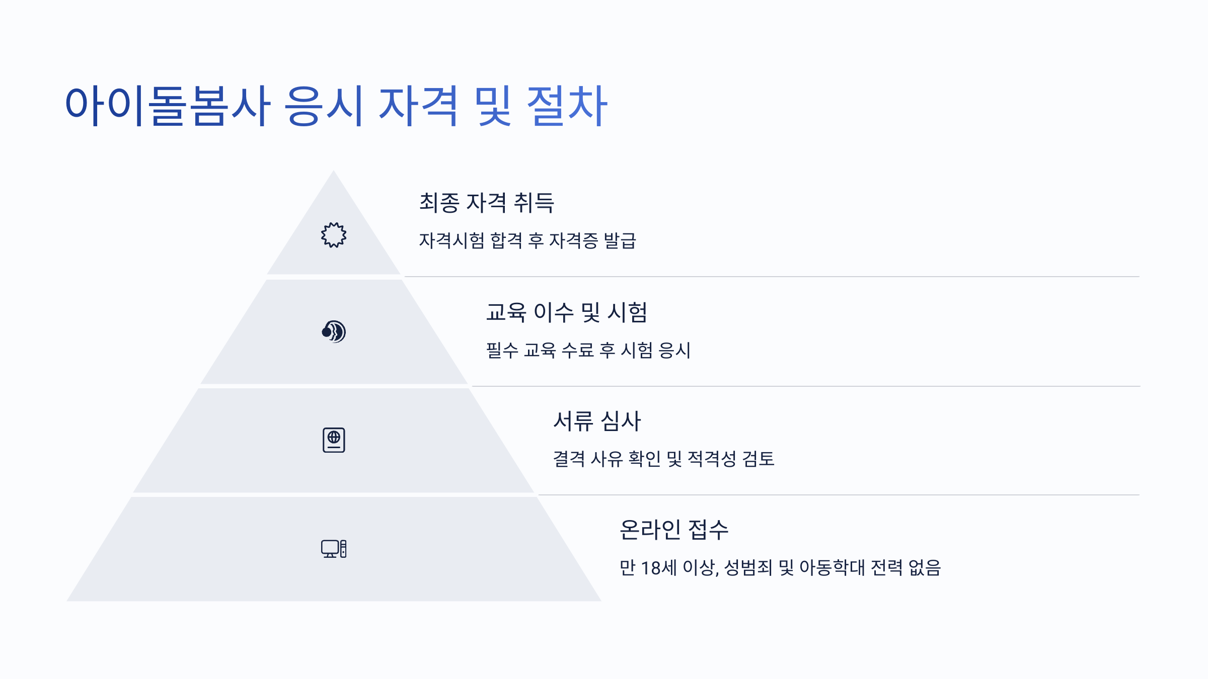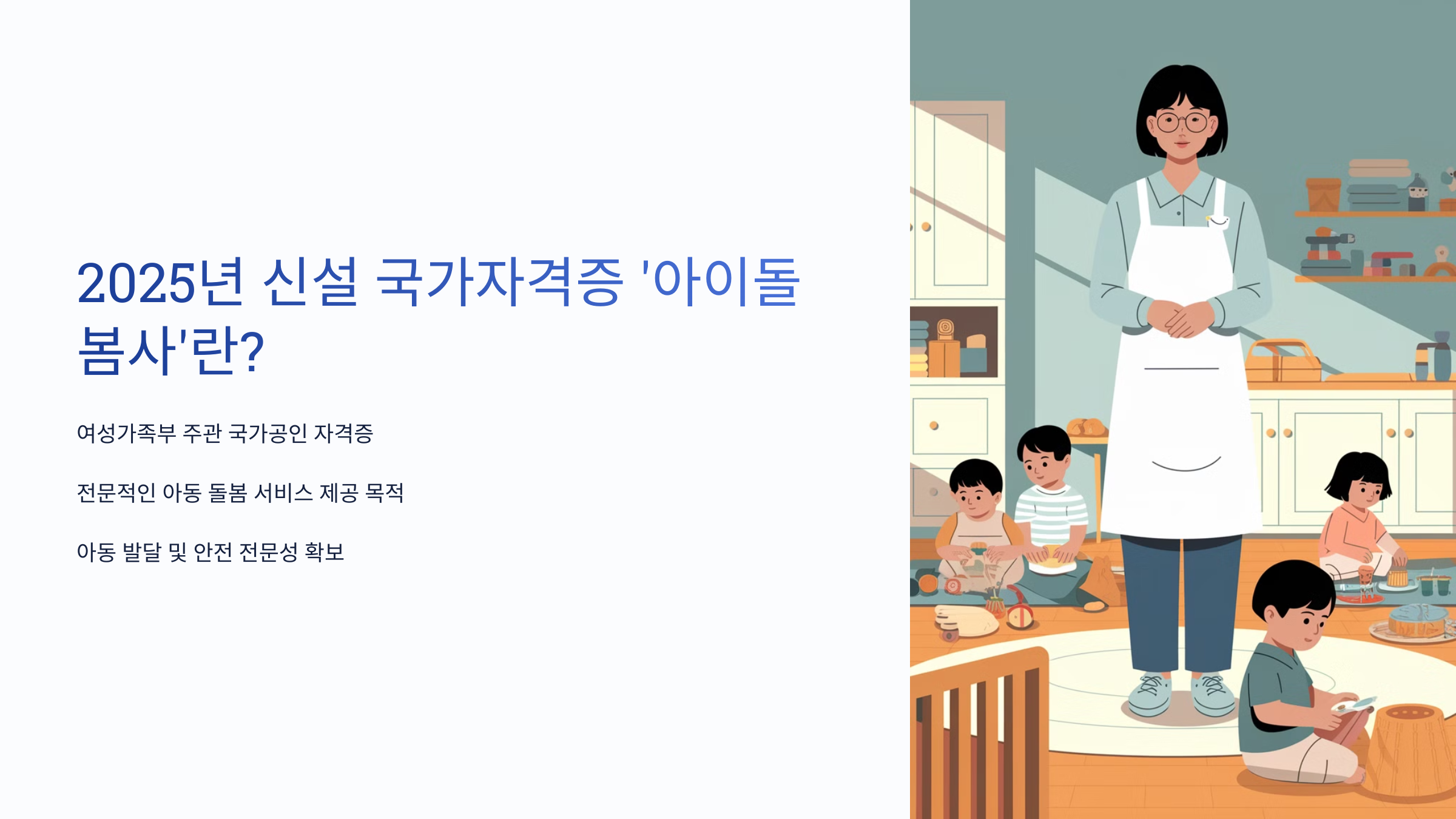 2025๋ ๋ถํฐ ์ํ๋๋ ‘์์ด๋๋ด์ฌ’ ์๊ฒฉ์ฆ์ ๋ณด๊ฑด๋ณต์ง๋ถ๊ฐ ์ฃผ๊ดํ๋ ๊ตญ๊ฐ๊ณต์ธ ์๊ฒฉ์ฆ์ผ๋ก, ์์ ์ ๋ฐ ์๋์ ์์ ํ๊ณ ์ ๋ฌธ์ ์ผ๋ก ๋๋ณด๋ ์ธ๋ ฅ์ ์์ฑํ๊ธฐ ์ํด ์ ์ค๋์์ต๋๋ค. ๊ธฐ์กด์ ๋จ์ ์๋ฅด๋ฐ์ดํธ ๊ฐ๋ ์ ๋๋ด์๋น์ค์๋ ๋ฌ๋ฆฌ, ์์ด๋๋ด์ฌ๋ ๊ต์ก, ์ฌ๋ฆฌ, ๊ฑด๊ฐ, ์๊ธ์ฒ์น ๋ฑ ์ ๋ฐ์ ์ธ ์ง์์ ๊ฐ์ถ ์ ๋ฌธ ์ธ๋ ฅ์ผ๋ก ์ธ์ ๋ฐ์ต๋๋ค.